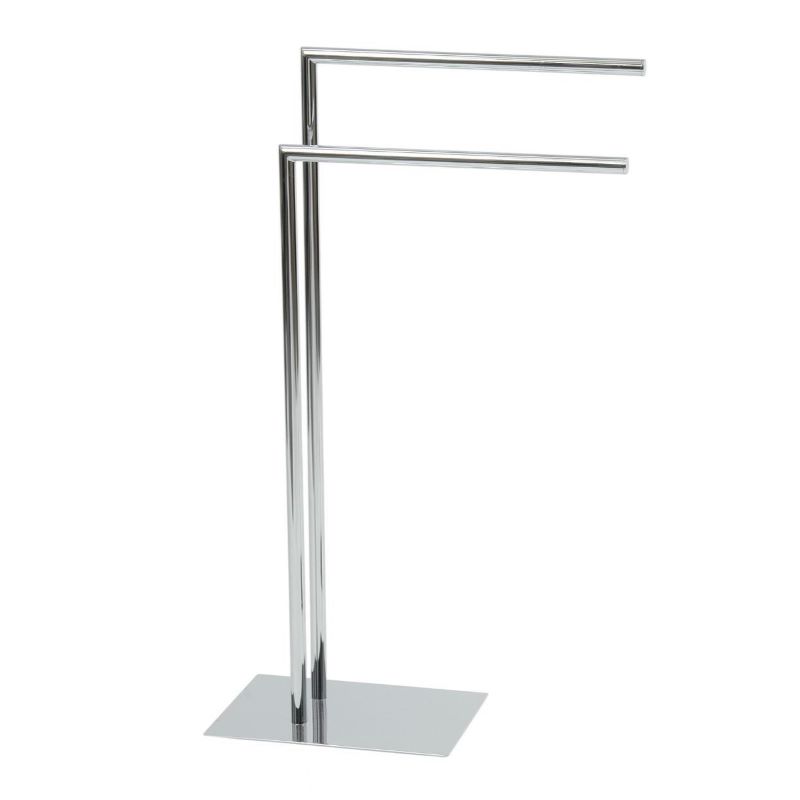 Portasciugamani da terra in acciaio cromato a barre tonde.
