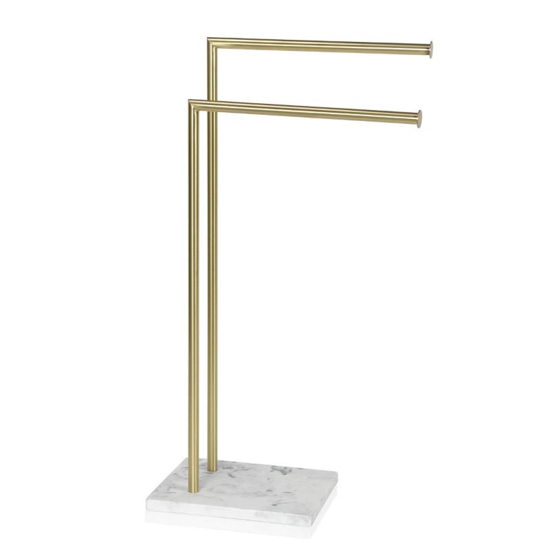 Elegante portasciugamani con base in marmo e struttura tondeggiante di colore oro.