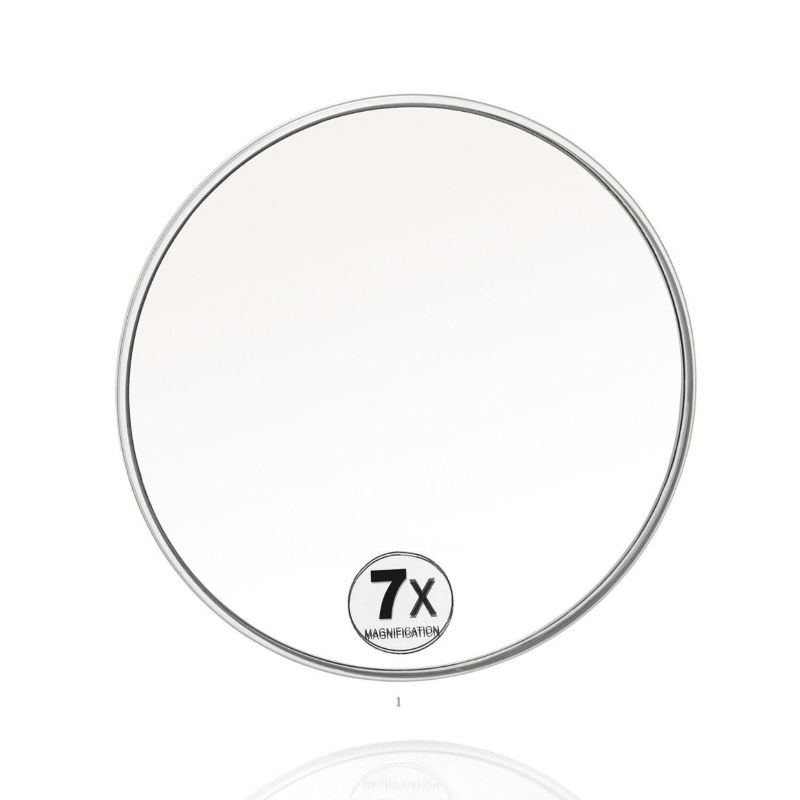 Specchio piccolo ad ingrandimento x7 di forma rotonda con ventose sul retro.