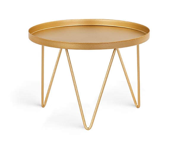 Elegante alzatina decorativa rotonda in metallo color oro, perfetta per servire dolci, cupcake, pasticcini o per esporre piccole decorazioni natalizie.
