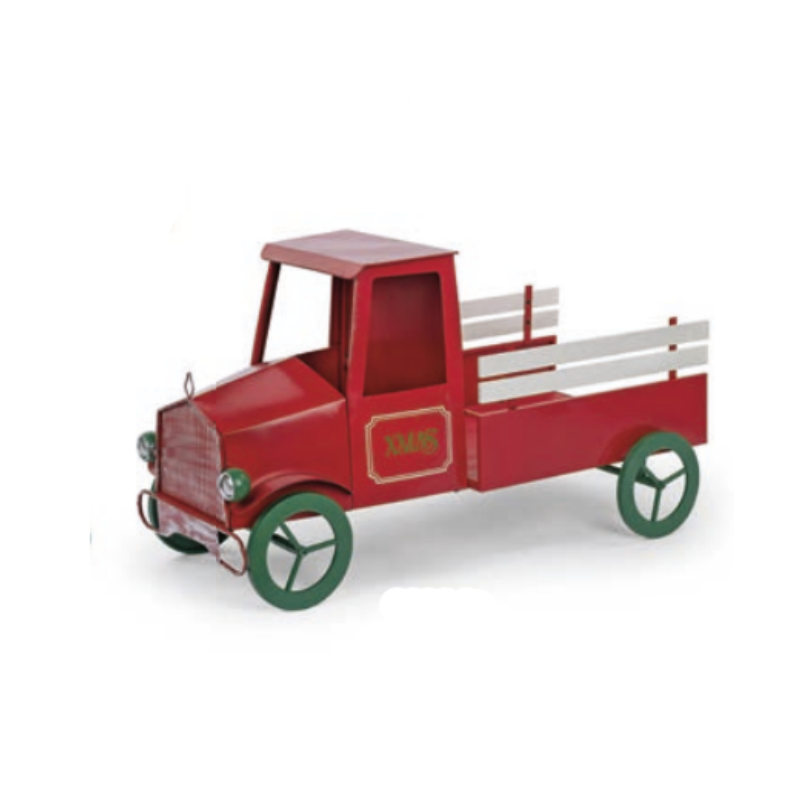 Splendido furgoncino decorativo in legno e metallo nei colori rosso, verde e bianco, con finitura vintage e scritta “XMAS” sulla portiera. Perfetto come elemento scenografico natalizio per vetrine, ingressi o salotti, può essere decorato con pacchetti regalo, pigne o lucine per creare ambientazioni d’effetto e calde atmosfere natalizie.